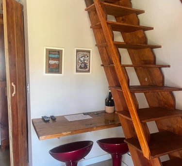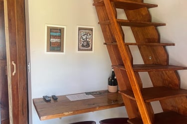A charming Tiny House, perfect for those seeking coziness and a close connection with nature. The mezzanine features a double mattress and a single mattress, providing comfort for up to three guests. The space also includes a fully equipped kitchen, private bathroom, TV, and fan for your convenience. Outside, a delightful porch with a table and hammock space invites you to relax while enjoying a beautiful view of the surrounding nature.